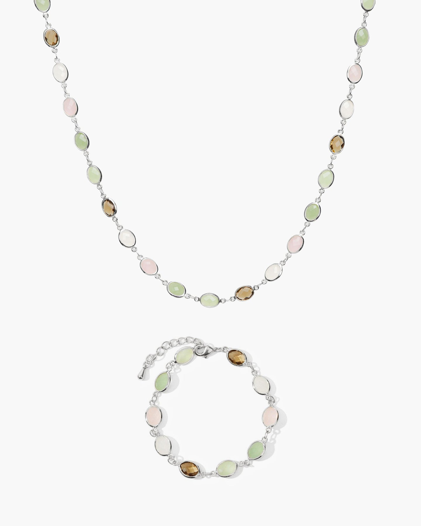 Pastel Oval Link Necklace & Bracelet Set - White Gold